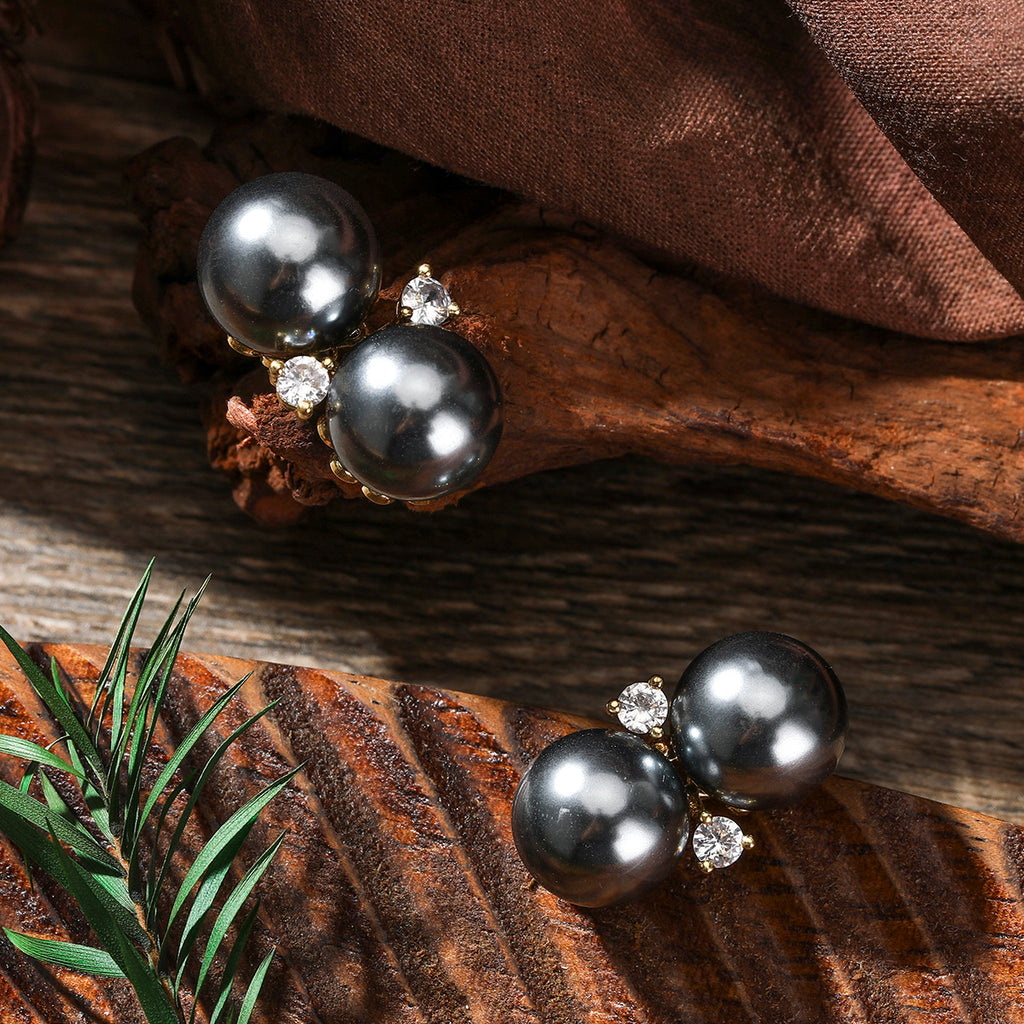 Double Pearl Stud Earrings In 3 Different Colors With White Zircons