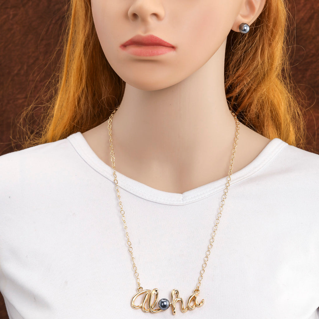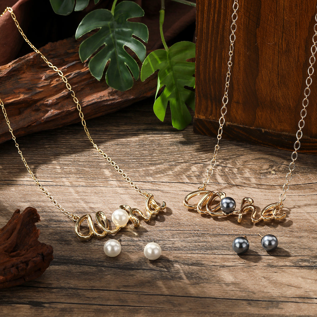 Set Of "Aloha" Necklace And Stud Earrings With Pearls In 2 Different Colors