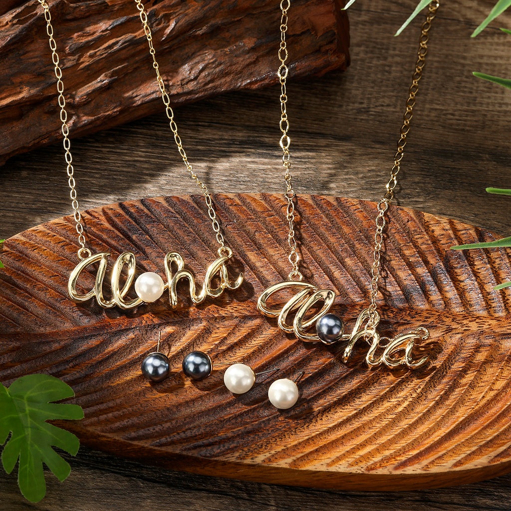 This beautiful set includes a necklace and stud earrings, both featuring freshwater pearls in light silver or petrol pearl colors. The necklace is Aloha pendant. Add a touch of class to your style.