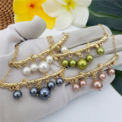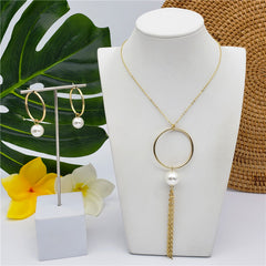 Set Of Pearl Round Earrings And Necklace With Chains In 2 Different Colors